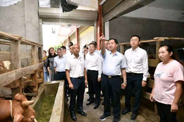 在高峰村脫貧致富帶頭人趙雪紅家里,陳肇雄走進牛棚認真查看養(yǎng)殖情況,親切詢問飼養(yǎng)數(shù)量、年收入情況。趙雪紅家曾經(jīng)因為一次突發(fā)的特大山洪,失去了親人,也幾乎喪失了對生活的信心。在中國電科家庭式母牛散養(yǎng)項目啟動后,她主動報名參與,并按照散養(yǎng)要求,全身心的做好科學飼養(yǎng)。2019年,趙雪紅賣了5頭半大牛犢,換來了近5萬元的收入,家里還有8頭牛在欄,價值近20萬元。陳肇雄對趙雪紅自立自強的精神表示贊賞,對其家庭的扶貧變化感到高興,叮囑她要發(fā)揮好致富帶頭人作用,帶動更多鄉(xiāng)親脫貧致富。