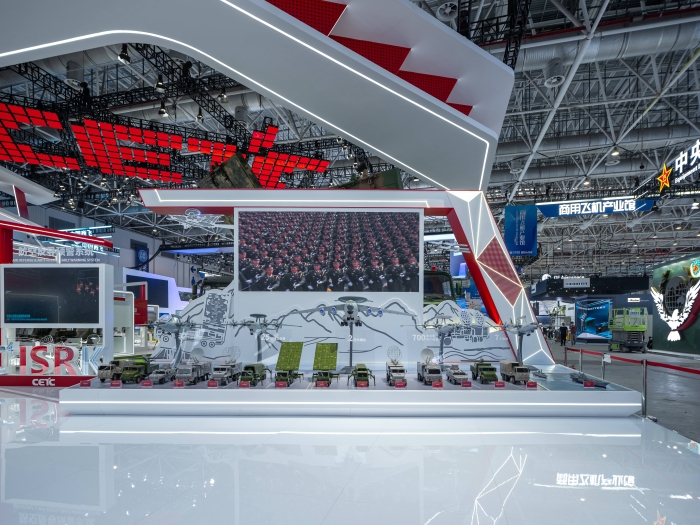 本屆展會,中國電科以“擁抱體系制勝時代”為主題,打造了C4ISRK、電子基礎、數(shù)字經(jīng)濟、新域新質等四大展區(qū)。攜旗下37家二級單位,43家研究院所,室內外展示面積達1萬平米,共展出36部大型實裝,480項產(chǎn)品參展,其中73項產(chǎn)品首次亮相。體系化展示了整體解決方案和譜系化、智能化裝備,彰顯了軍工電子在武器裝備機械化、信息化、智能化融合發(fā)展中的作用。