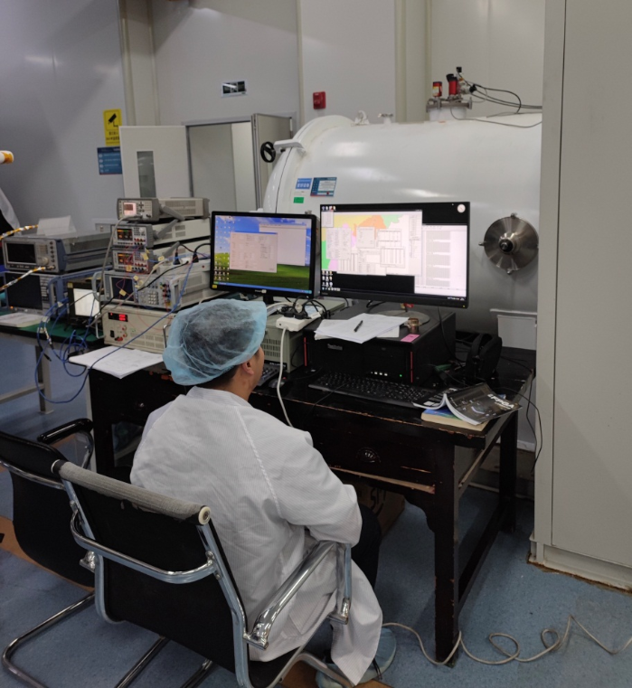 7月17日凌晨三點,西光廠內(nèi)一片寂靜,路燈似乎也熱到發(fā)著微弱的光,偶爾聽得到一聲兩聲狗的吠叫。此時,熱真空實驗室依然燈火通明,伴隨著機器聲轟鳴作響,王玨和姚佳豪喝完第二杯咖啡,“掰開”上下眼皮,繼續(xù)守在設(shè)備前,緊緊盯著設(shè)備的功能和性能指標(biāo)?!爸笜?biāo)完全符合要求”!最后一個循環(huán)結(jié)束,王玨激動地說道。他和姚佳豪通宵達旦地開展大量試驗驗證, 經(jīng)過4個白天和黑夜,最終順利完成了某項目熱真空試驗。