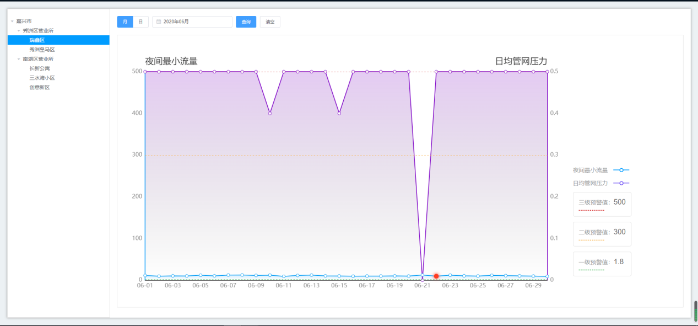 智慧水務(wù)云平臺(tái)可以通過先進(jìn)的漏損定位算法和DMA的夜間最小流量,能夠及時(shí)發(fā)現(xiàn)漏損并精準(zhǔn)提供漏損位置信息,自動(dòng)判斷、分析各DMA是否泄漏以及當(dāng)前泄漏水平,為制定檢漏方案提供依據(jù)。在出現(xiàn)停斷水或爆管等突發(fā)事件時(shí),通過智慧水務(wù)云平臺(tái)的漏損定位,幫助實(shí)現(xiàn)排查縮小范圍,減輕一線工作人員排查難度,減少居民停斷水時(shí)間。