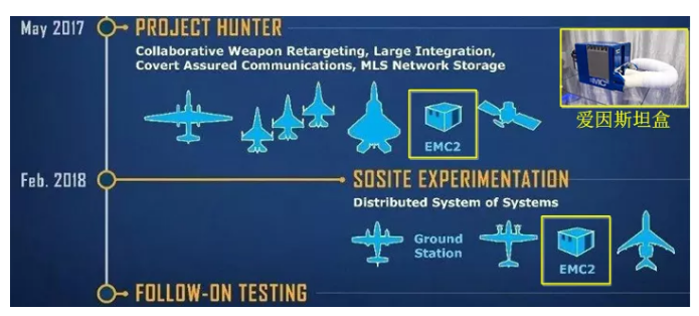 在SoSITE項目的最新試驗中,使用了臭鼬工廠開發(fā)的復雜組織體開放式系統(tǒng)架構(E-OSA)任務計算機版本2(EMC2),即所謂的“愛因斯坦盒”,如圖7所示。洛克希德·馬丁公司開發(fā)的E-OSA兼容了美空軍OMS標準?!皭垡蛩固购小笨蔀橄到y(tǒng)之間的通信提供了安全保護功能,在將相關能力部署到操作系統(tǒng)之前,“愛因斯坦盒”能夠確??焖俣踩膶嶒??!皭垡蛩固购小辈粌H是一個通信網(wǎng)關,它可被比作一部智能手機,能夠運行很多不同的應用程序,具備實現(xiàn)動態(tài)任務規(guī)劃、ISR以及電子戰(zhàn)的能力。